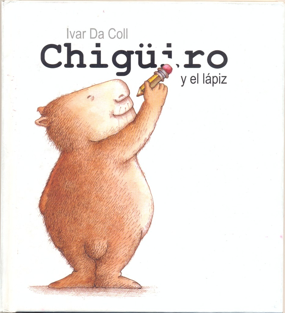 Pero si existe un libro que sea a su vez símbolo de lo que culturalmente significa ser colombiano y que sintetice el enorme avance que ha dado la literatura infantil del país en los últimos treinta años, es Chigüiro (1985) de ese enormísimo cronopio que es Ivar da Coll (Bogotá, 1962). La serie de nueve libros, nacida de una idea de la en esa época editora Silvia Castrillón, adquirió con el paso de los años una relevancia inusitada y empezaron a circular y ser leídos con gozo entusiasta en bibliotecas públicas, en salas de espera con mamás embarazadas y en aulas de prescolar y primaria. Los pequeños álbumes sin texto, creados con la pretensión básica de acercar a los niños pequeños a la lectura, mostraron que el joven ilustrador de libros escolares y titiritero ocasional podía llegar a ser un maestro, como en efecto lo ha demostrado con la saga de libros posteriores, que sin firma, a lo lejos, tienen la identidad de este escritor e ilustrador soberbio, de una sensibilidad particularísima[5]. Los nueve libros recogen breves y sencillas historias de un animal nativo de los Llanos colombianos, que lo muestran curioso, inocente y tierno, mientras descubre el mundo de los adultos, como también el encanto secreto de las pequeñas cosas: una ramita, una pelota, un lápiz. Chigüiro es una síntesis de logros creativos. Da inicio definitivo al género del álbum ilustrado en Colombia, crea una gramática de lectura para los niños pequeños, funda un modo de narrar basado en un único personaje animal, y establece la noción de colección para que los niños puedan estar unidos a un libro largo tiempo. Da Coll todavía tiene mucho que decir y como en todo artista arriesgado, sus búsquedas mayores apenas se inician.